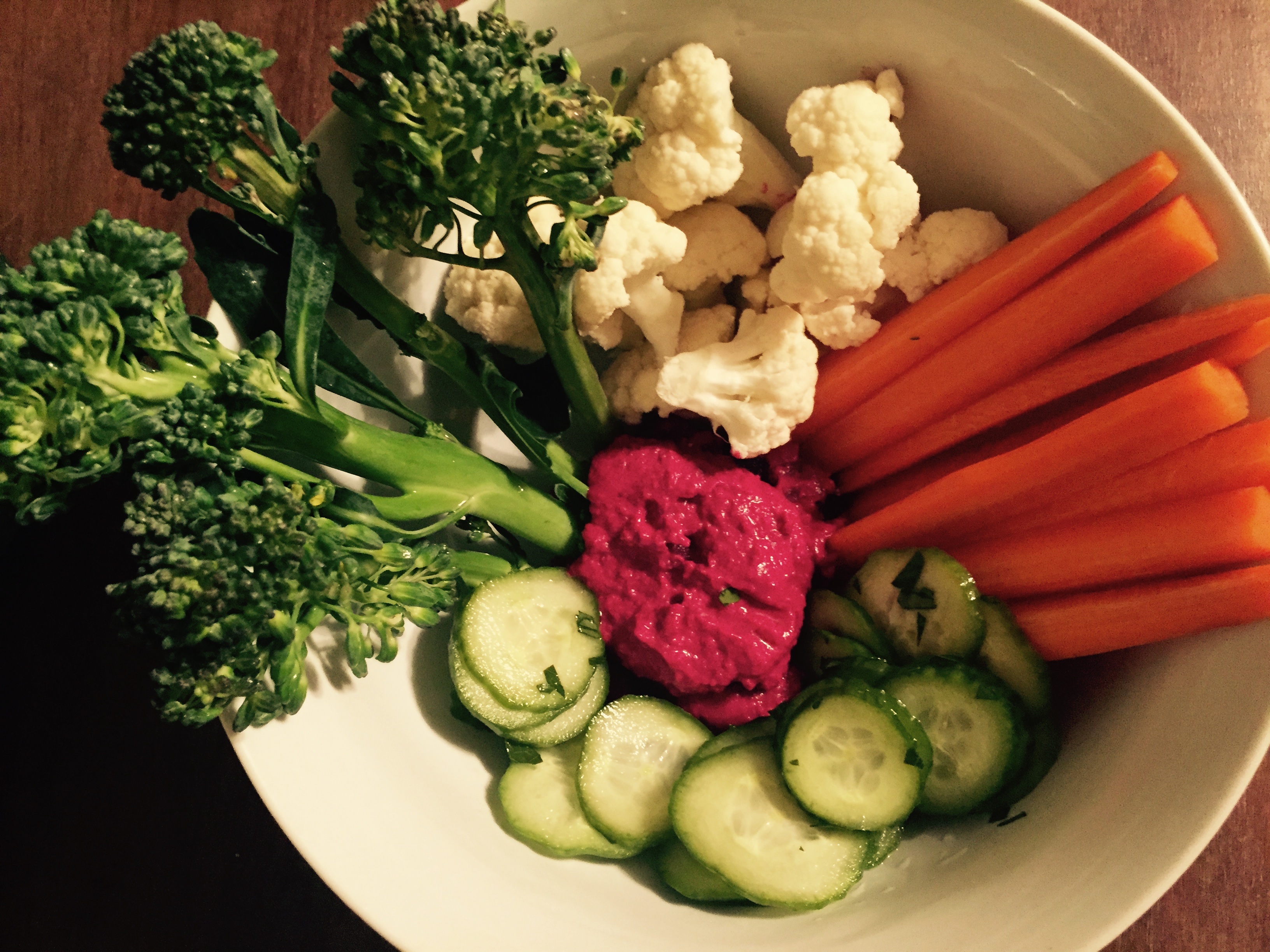 2) In a Food Processor, add the Beets, Garlic, Garbanzo Beans, Tahini, lemon juice, garlic, and salt and pepper to taste. Pulse, scraping the bowl until it becomes a smooth paste.