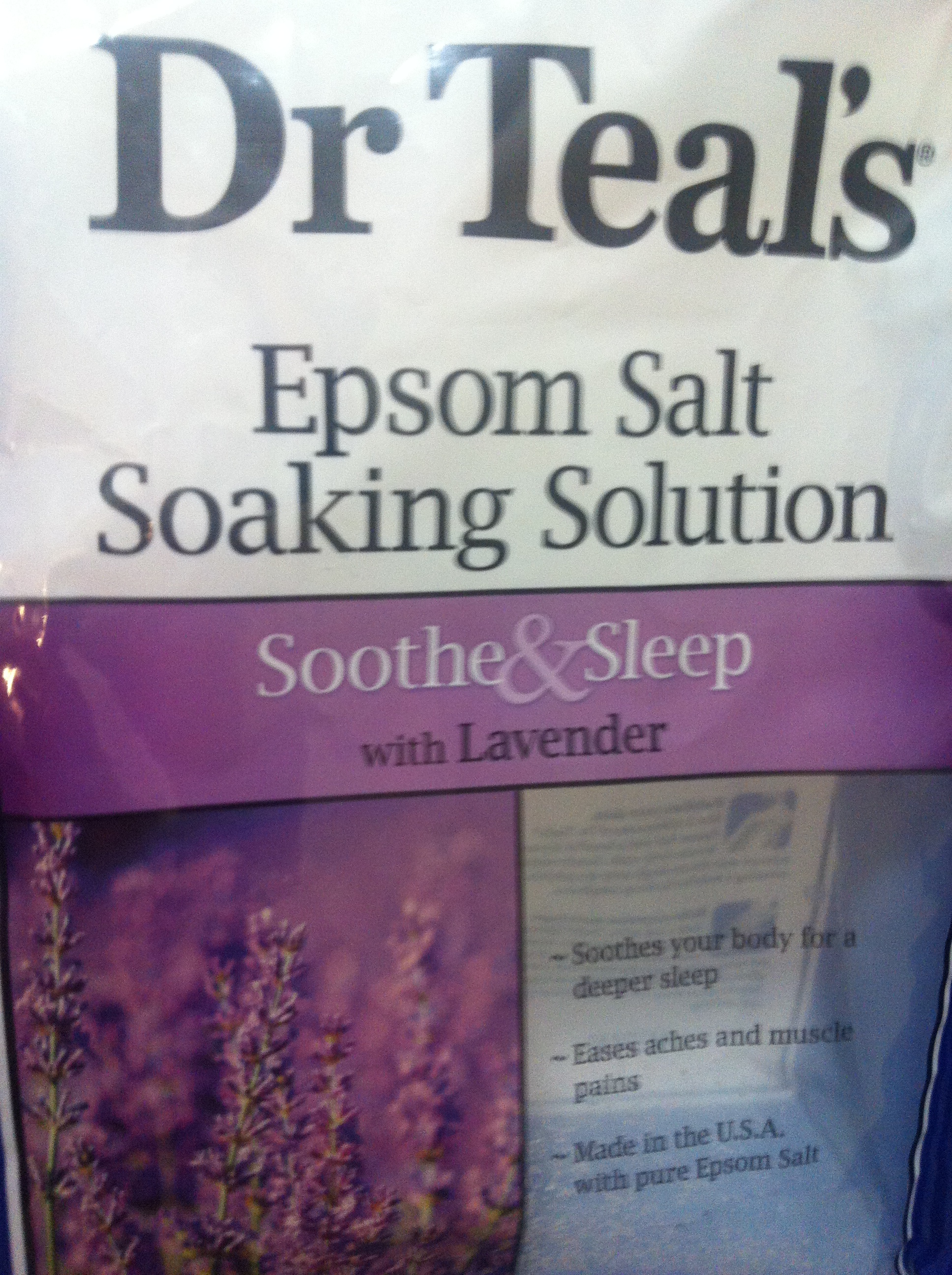 Relaxing bath : In a tub filled with warm water add 2 cups of Epsom Salt. Soak in the water for 20 minutes. I like to add drops of Lavender and Chamomile Essential Oils to help me relax.