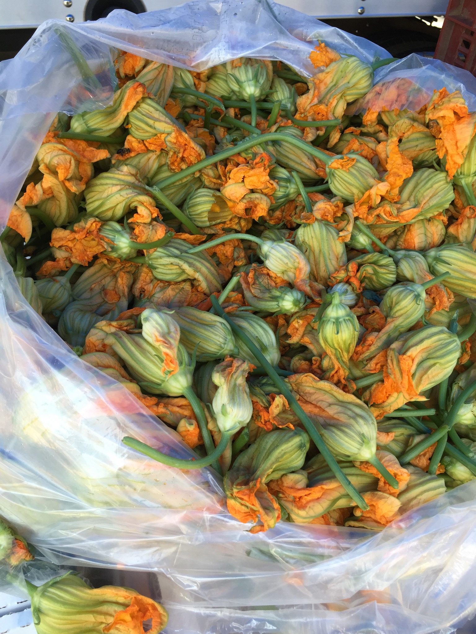 Zucchini Blossoms, Flor de Calabaza, Flor de Abobrinha, Fiore di Zucca…I can say it in different languages and they all sound like music to my ears! Zucchini Blossoms are a gift from Nature. They are not only beautiful, but also delicious in any way you want to make them. Deep fried in batter; sauteed with corn and shallots inside a warm corn tortilla; in a light and tasty chicken broth, the possibilities are endless!