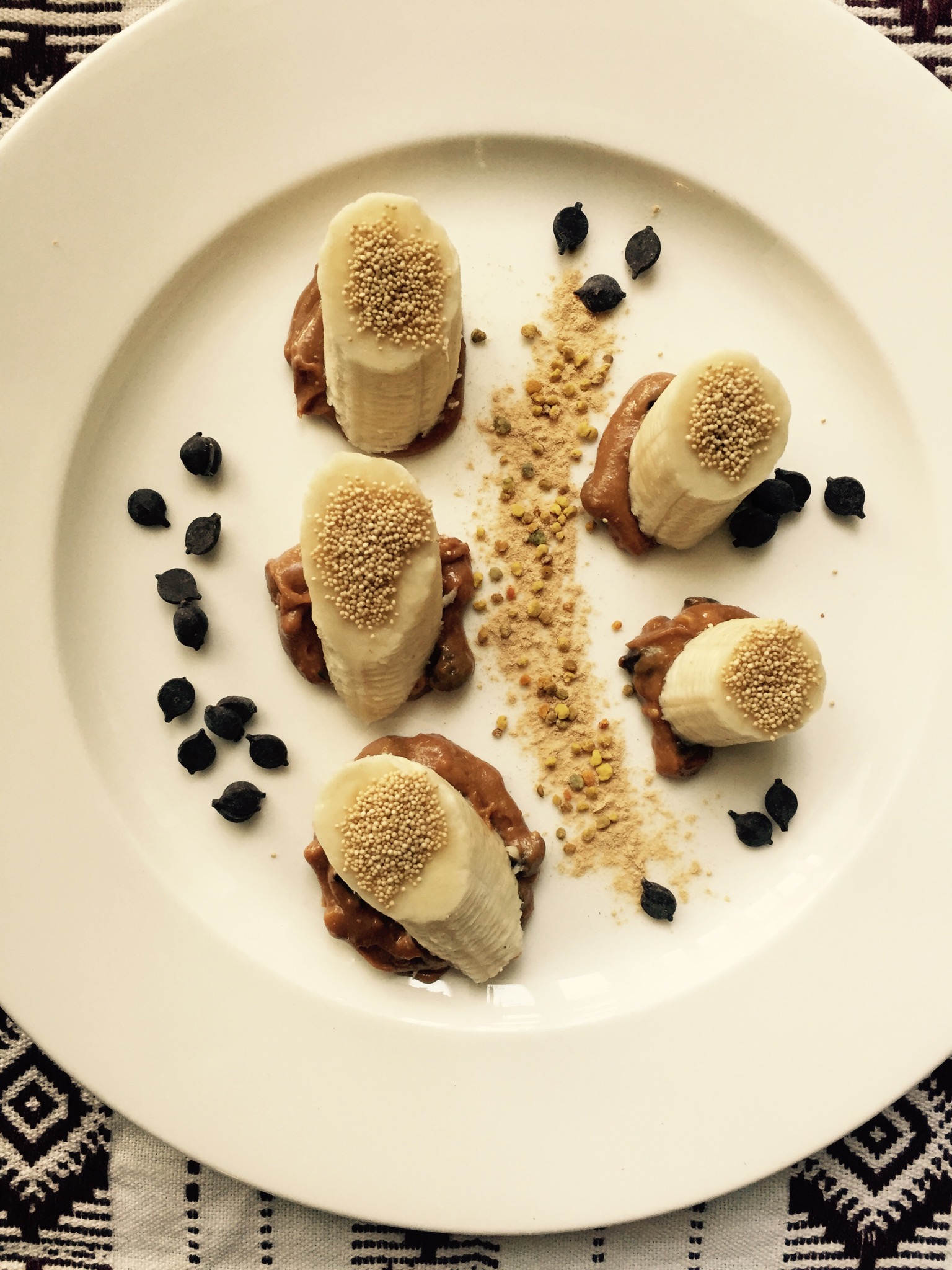 3. On a plate sprinkle 1 teaspoon of Maca powder, and 1 tsp Bee Pollen.