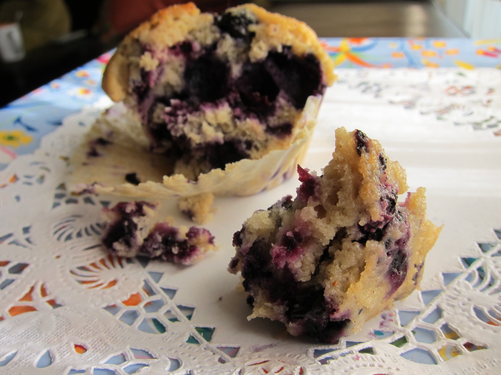 ***Blueberries : If using frozen blueberries, use them while they are still frozen; it helps hold the shape of the muffin (otherwise, the batter will become too watery).