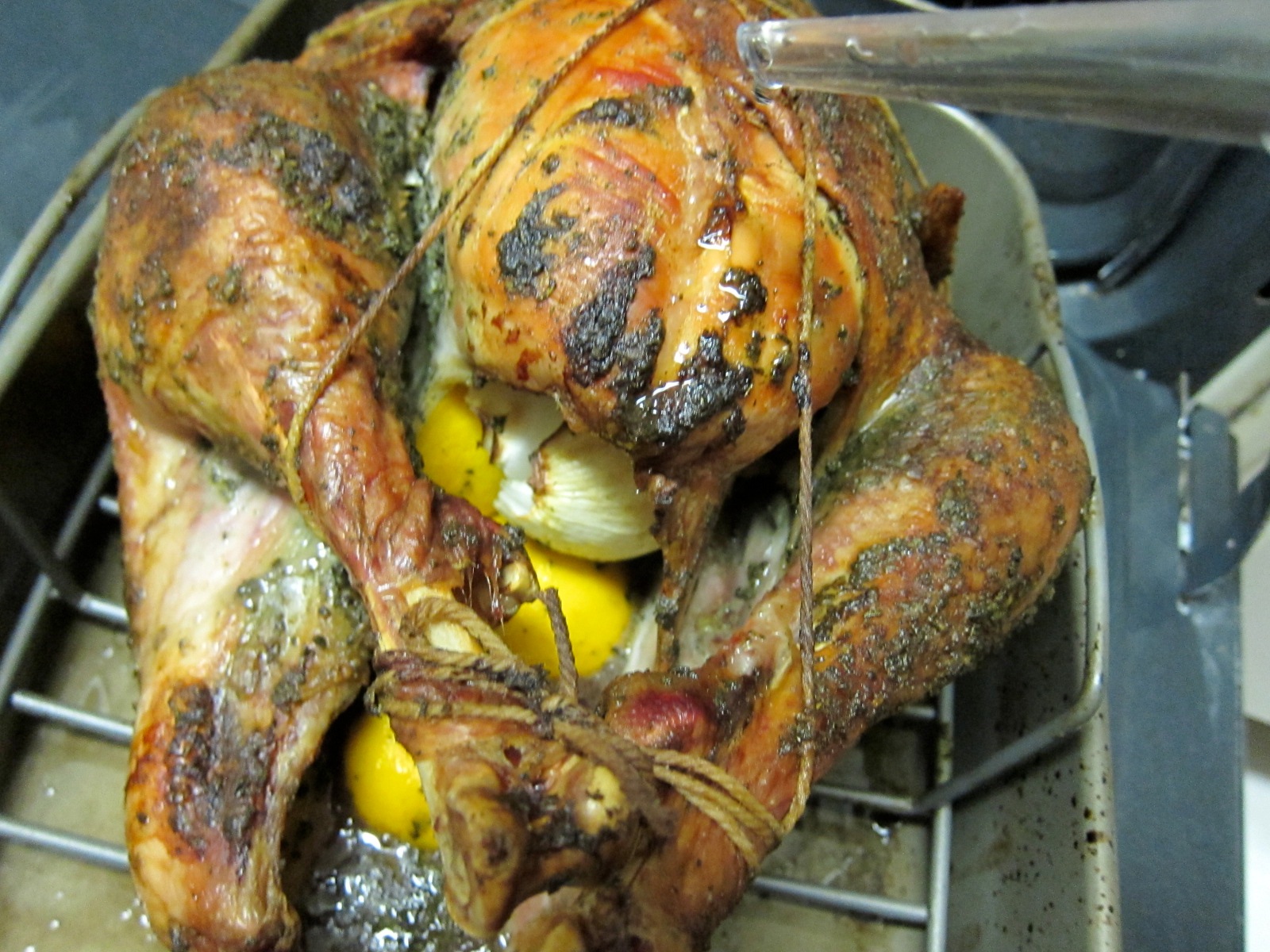 4. Keep checking the bird. When the temperature reaches 165F in the thickest part of the bird (thigh meat). Remember that cooking times vary depending oh the bird’s weight. I used here a 13 lbs bird.