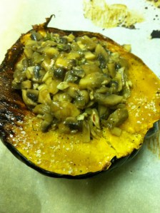 Roasted Squash with Mushrooms+Herbs+Gruyere